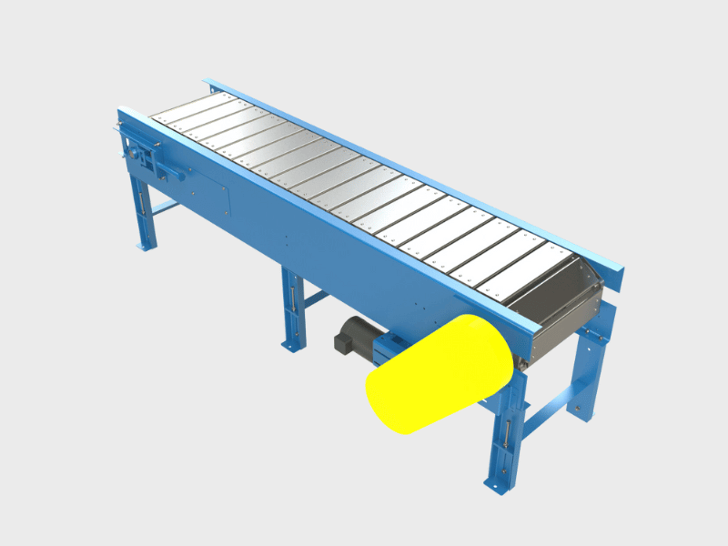 The Slat Conveyor is a robust and versatile material handling system designed for efficiently moving heavy, bulky, or irregular-shaped items. Featuring durable slats linked to a continuous chain, it ensures smooth transport of goods across assembly lines, packaging stations, and production floors. Its customizable and low-maintenance design makes it ideal for demanding industrial applications.